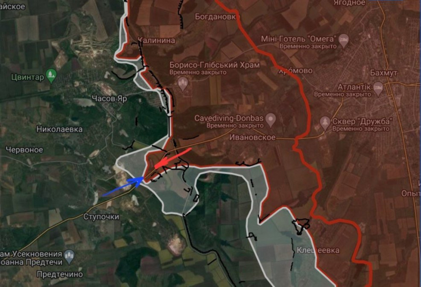 На ЧасовЯрском направлении южнее Часового Яра продолжаются встречные бои.