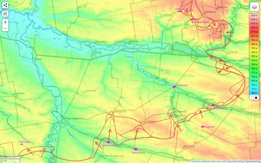 И если при этом наши части группировки "Центр" совершат бросок к реке с севера, а им для этого надо пройти 10-12 км (об этом в следующем материале), то вся Кураховская группировка противника попадет в окружение, отмечает Юрий Подоляка в своем Telegram-канале.
