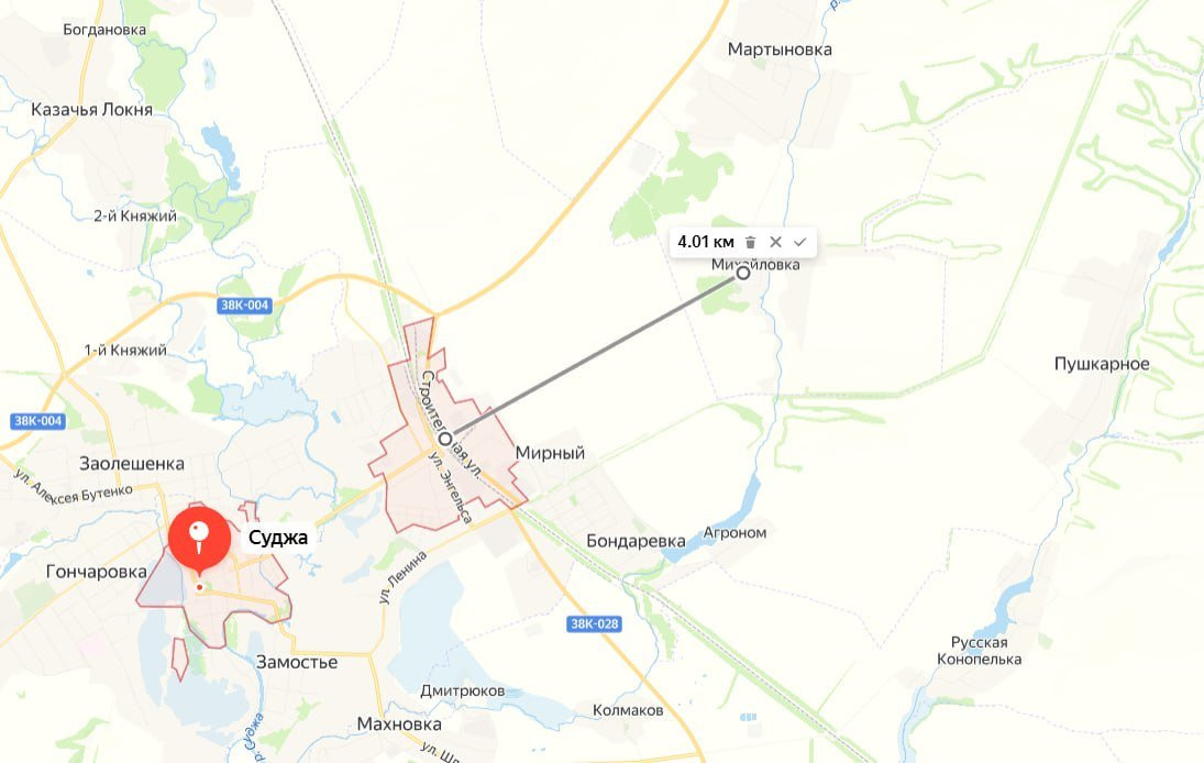 Вместе с этим военные эксперты подчёркивают, что российским войска осталось четыре километра, чтобы дойти за Суджи.