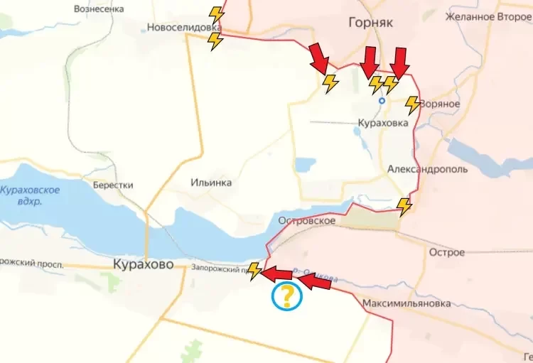 Штурмовые отряды ВС РФ немного продвинулись на северных окраинах Кураховки. Пока что ВСУ оказывают здесь ожесточённое сопротивление и не организуют отступление на запад через террикон ЦОФ «Кураховская». В восточной части Новоселидовки продолжаются бои. Пока что нашим бойцам не удаётся сломить сопротивление ВСУ в населённом пункте. Штурмовая бронегруппа ВС РФ ворвалась на восточные окраины Курахово. Увы, не без потерь, информирует PulsePen. Закрепились ли наши бойцы на новых позициях - на текущий момент неизвестно. Также не совсем понятна обстановка чуть южнее - удалось ли взять крупный опорник ВСУ или же пока нет.
