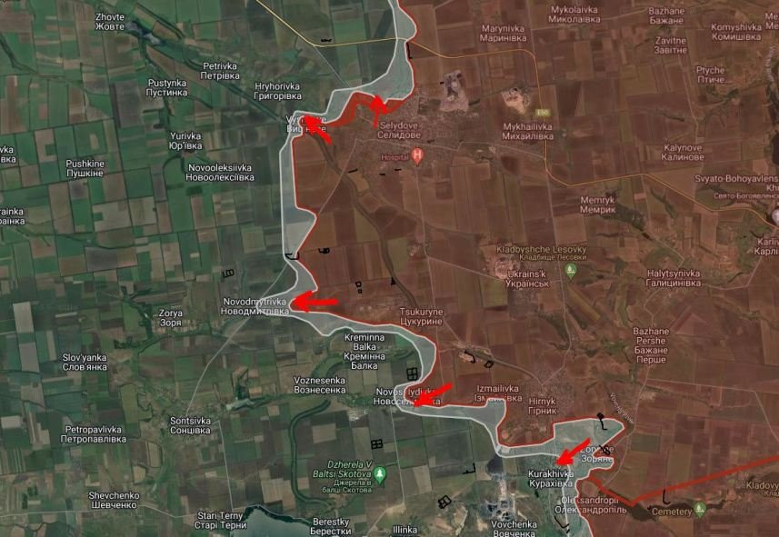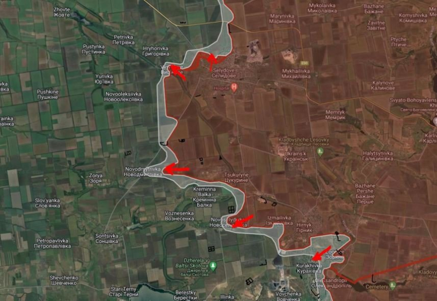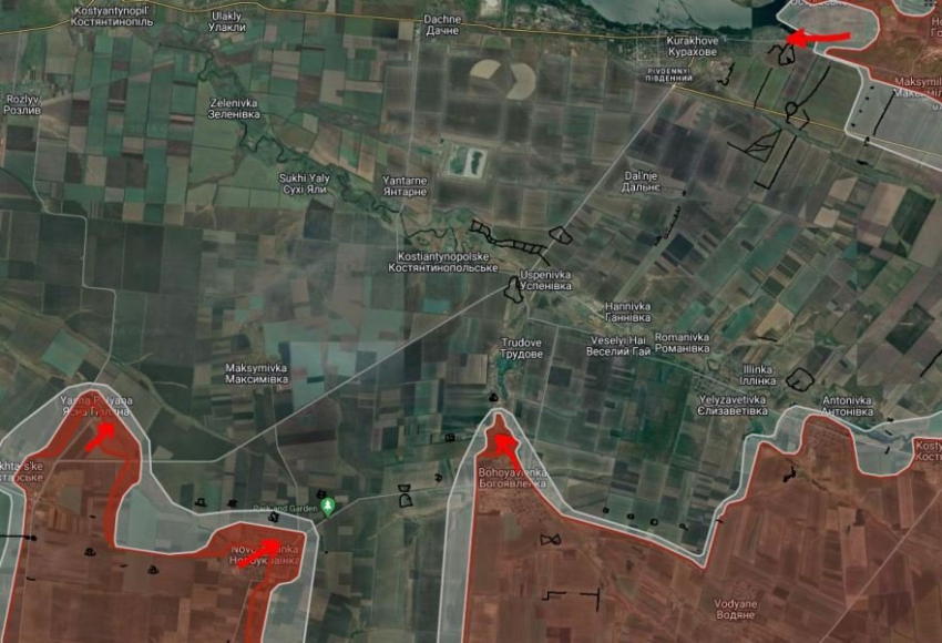 На Кураховско-Константинопольском направлении российские войска давят в восточной части Курахово. Под контроль ВС РФ перешли Новоукраинка и Ясная Поляна. Российские войска ведут штурмовые действия на западных окраинах Шахтёрского. Севернее Богоявленки российские войска продвинулись в районе Константинопольского урочища на глубину до 1.6 км.
