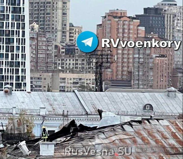 В Сети появилось изображение поврежденного здания Генерального штаба ВСУ в Киеве после серии взрывов. Фото было опубликовано в Telegram-канале "Операция Z: Военкоры Русской Весны".