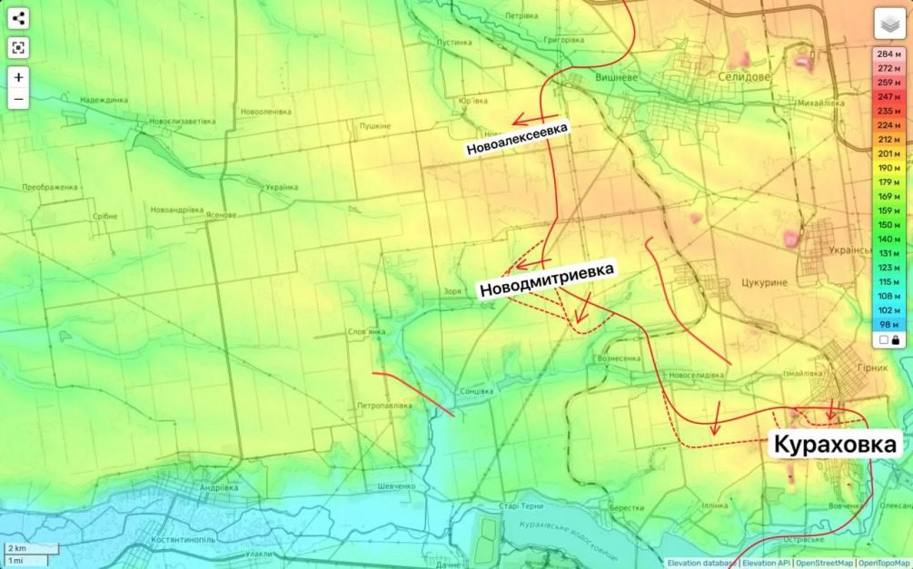 Тем временем, другие подразделения ВС РФ отрезают Курахово западнее, продвигаясь к Константинополю.