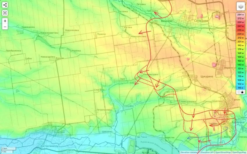Российские части продолжают наступление с юга по охвату Кураховской группировки противника, пишет 1 ноября в своем Telegram-канале журналист Юрий Подоляка.