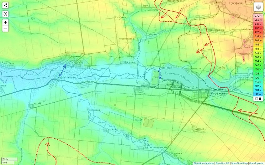 Занятие жд полотна севернее н.п. Берестки даст нам визуальный контроль над дорогой в Курахово по плотине Кураховского водохранилища. Что практически сделает невозможным пользоваться ею для снабжения группировки ВСУ в городе.