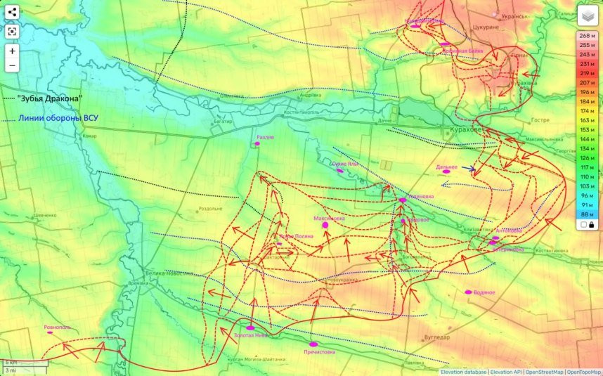 При этом оборона противника продолжала схлопываться в кармане юго-восточней Курахово. И все говорит о том, что уже скоро противник закончит выводить оттуда свои части и будет выстраивать далее свою оборону на внешнем контуре этого города.