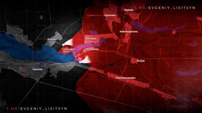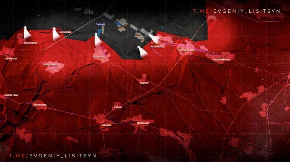 На Кураховском направлении наши парни атакуют на северном берегу Кураховского водохранилища. Российский флаг был поднят над Степановкрй. Продолжаются бои в районе Берестков, там наши стараются отбить позиции на холмах севернее села. Кроме того, идут бои в районе села Трудовое. От него до единственной трассы из Курахово всего девять километров. К западу от Селидово разворачивается наступление, бои идут в районе Петровки, Григоровки и Новоалексеевки.