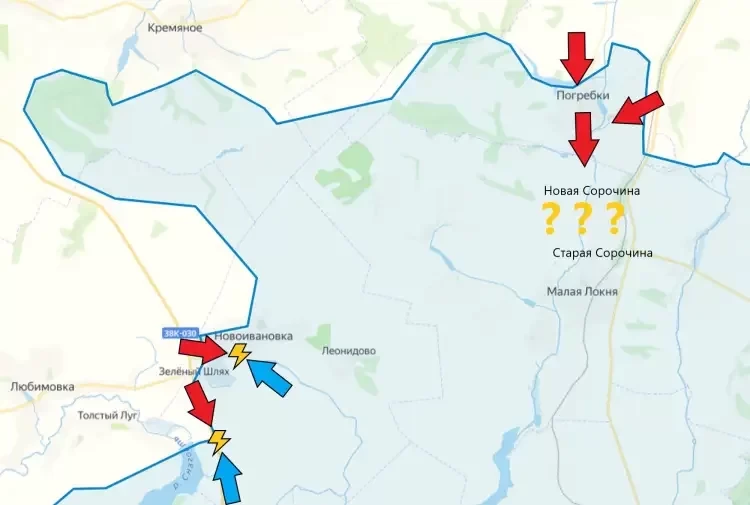 Предположительно, наши бойцы полностью зачистили Погребки и взяли под свой контроль соседние населённые пункты Марьевка и Орловка. Некоторые источники также утверждают, что подразделения ВС РФ также освободили Новую Сорочину и Старую Сорочину, вплотную подобравшись к Малой Локне. Однако эта информация пока что под вопросом, информирует PulsePen.