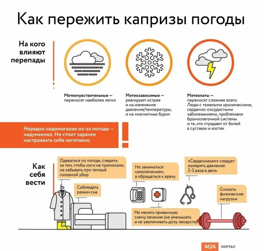 «Надо отслеживать прогнозы, и если синоптики передают магнитные бури, нужно быть максимально осторожными. В эти дни повышается риск инфарктов, инсультов, обострения ишемической болезни сердца. Риск попасть в стационар у метеозависимых людей во время магнитных бурь гораздо выше», - заключил Ахмедов.