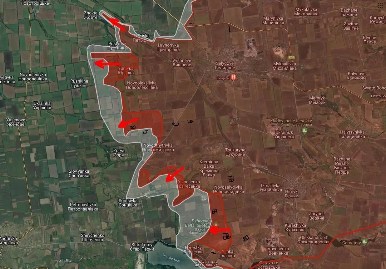 На Покровском направлении российские войска расширили контроль территории в направлении Желтое на глубину до 1.85 км.