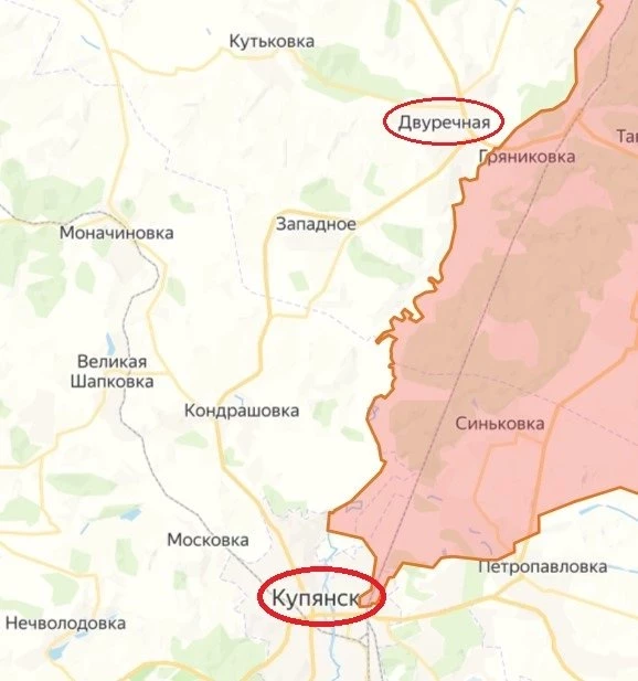 На Купянском направлении наблюдается смещение акцента боевых действий на западный берег реки Оскол, в частности, в район Двуречного. Здесь постепенно сосредоточиваются основные усилия наших войск, так как бои в районе Купянска начинают затихать.
