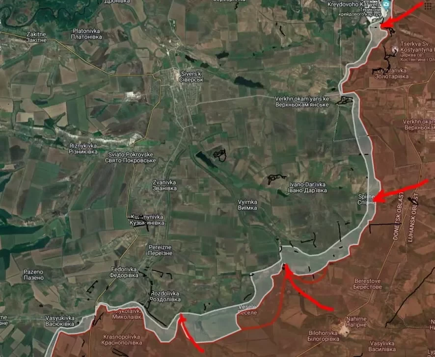 На участке фронта около Часова Яра ВС РФ интенсивно продвигаются и улучшают тактическое положение. Российские военные пересекли канал Северский Донец - Донбасс в лесном массиве на юго-восточной окраине населенного пункта.