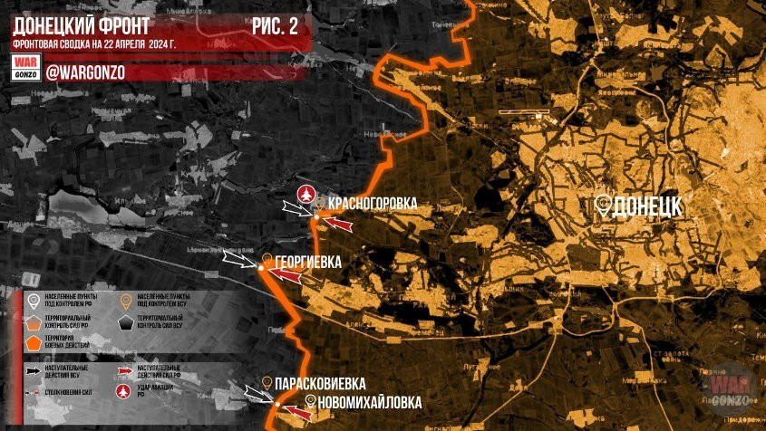 Свежая карта боевых действий на Украине по данным на 12:00 мск от 22.04.2024. Последние новости СВО на сегодня