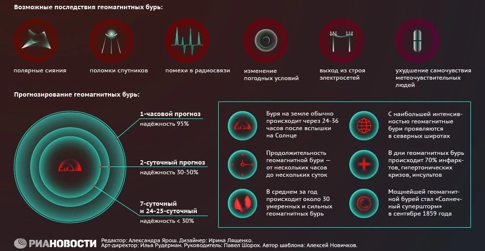 Последствия и прогнозирование магнитных бурь (инфографика)