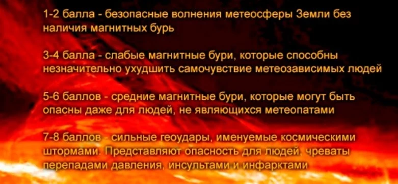 Сегодняшний понедельник, 2 декабря, в целом обещает выдаться неспокойным днём, ежели его рассматривать с точки зрения геомагнитного фона. Метеопатам рассказали о двух периодах, когда ожидаются магнитные бури. Утром - относительное спокойствие, чего не скажешь о середине дня и его вечерней части. Так, в период с 13:00 до 15:00 по московскому времени, как следует из предварительного прогноза экспертов, ожидается 4-бальная магнитная буря. Также неспокойно будет и с 19:00 до 21:00 мск. На этот временной отрезок прогнозируется геомагнитный шторм силой в 5 баллов.