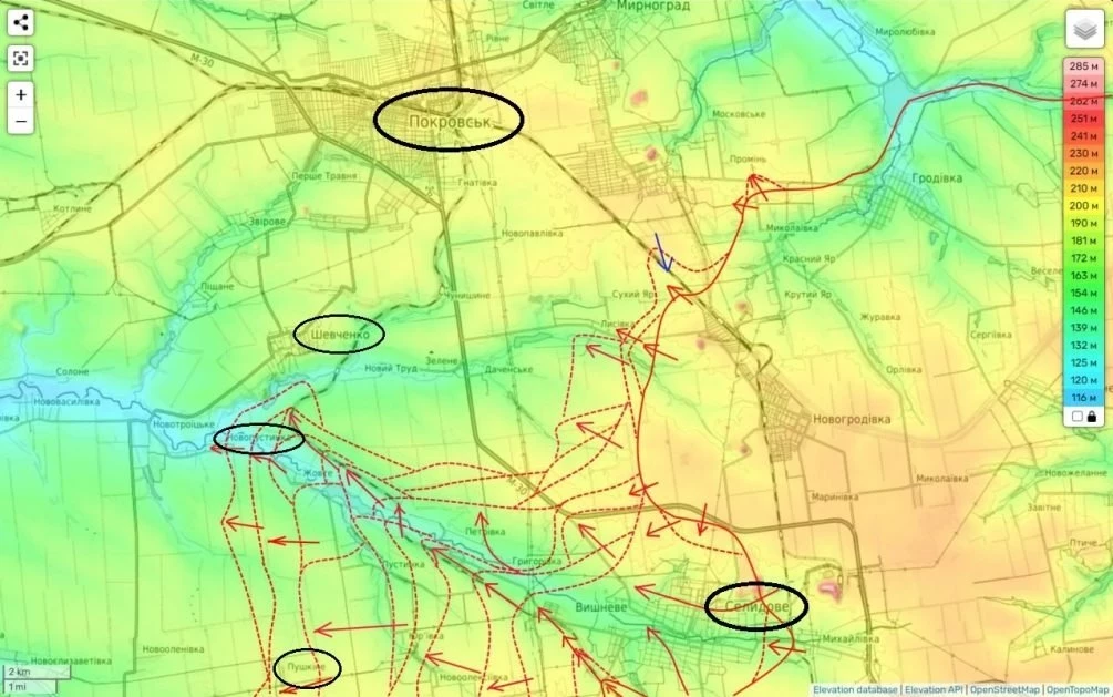 Главная цель ВС РФ - населённый пункт Шевченко. Если нашим удастся взять его под контроль, это создаст отличную базу для дальнейшего обхода Покровска с западной стороны.