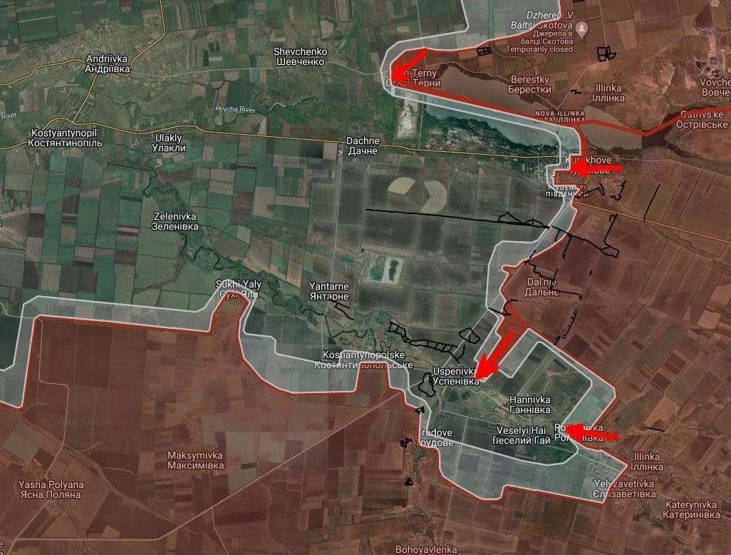 С места поступают сообщения о том, что большая часть населённого пункта Анновка на данном участке фронта перешла под контроль российской армии. Анновка расположена восточнее Успеновки, на берегу небольшого водохранилища, образованного рекой Сухие Ялы.