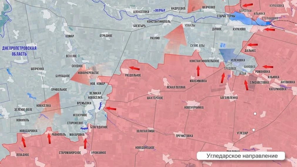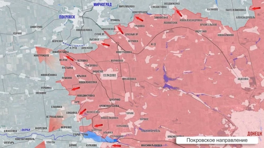На Покровском направлении российские войска ведут бои в Новопустынке и Шевченко, продвигаясь вдоль железной дороги.