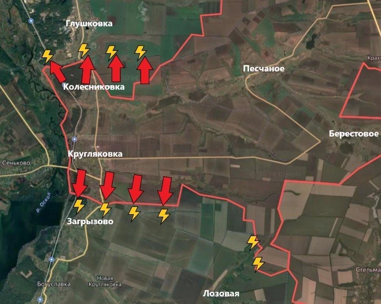 На южном участке подразделениям Армии России удалось существенно расширить зону контроля севернее и северо-восточнее Колесниковки. Также отмечается продвижение наших бойцов южнее и юго-восточнее Кругляковки.