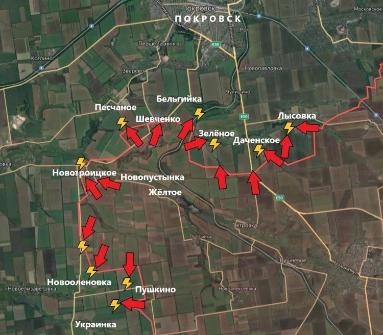 По последней информации, поступающей с места боев у Покровска, российские силы продолжают брать город в кольцо. ВСУ пытаются удержать Покровск, так как здесь находится шахта, питающая Украину коксующимся углем. На фоне бедственного положения в энергосистеме без этого угля велик риск паралича металлургической промышленности всей Украины.