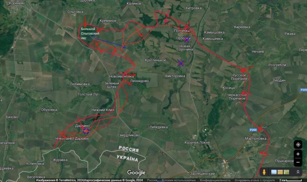 Судя по картам, которые разместил в своем блоге эксперт, сильнее всего подразделения ВС РФ давят вторгшиеся в Курскую область части ВСУ по направлениям к селам Гуево, Свердликово, Леонидово и Орловка, возле Новой Сорочины, Мартыновки, Русского Поречного и Черкасского Поречного, Куриловки и Махновки, отметил Подоляка в своём Telegram-канале.