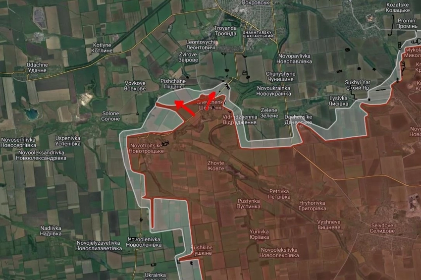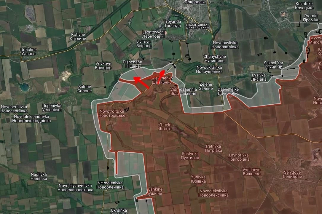 На Покровском направлении ВС РФ расширили контроль территории южнее Покровска, продвинулись в северной части Шевченко. Западнее Зари и Солнцевки российские войска давят в направлении Славянки и Петропавловки.