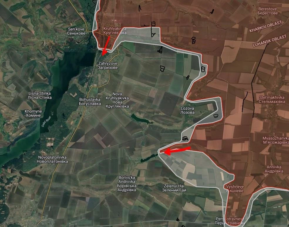 Южнее Пушкино российские войска продвинулись в направлении Украинки на участке шириной до 2.3 км на глубину до 1.35 км. Под контроль ВС РФ перешла Солнцевка, а также участок на западной окраине шириной до 1.95 км.
