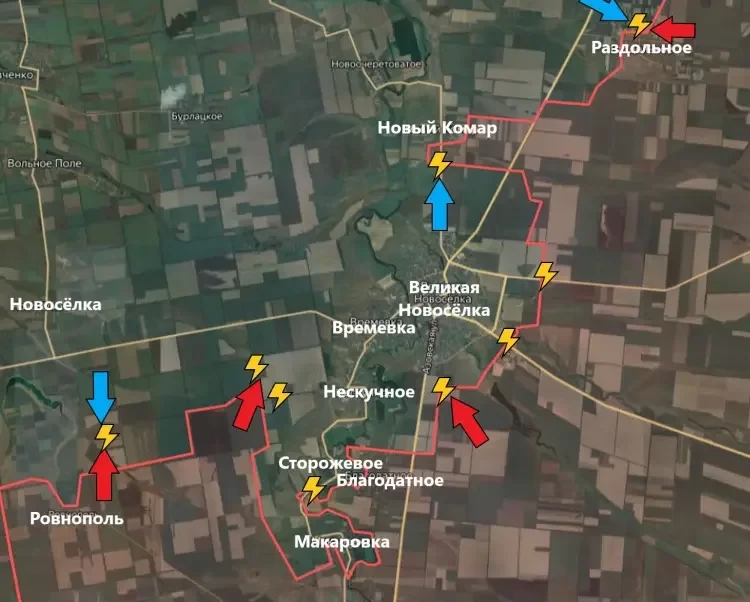 На Великоновосёлковском направлении ВСУ продолжают безуспешные попытки контратак в районе Нового Комара и Раздольного, сообщает PulsePen.