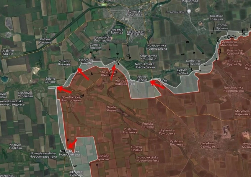 На Покровском направлении отмечаются интенсивные боестолкновения в районе Даченское, Шевченко, Песчаное и Волчье.