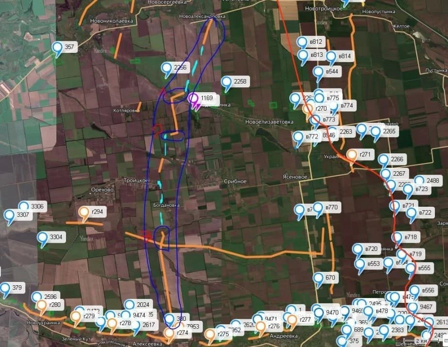 Причина понятна. Именно опираясь на эти позиции, наши части сумели выйти в тыл линии обороны противника расположенной вдоль оврага по сёлам Солёное - Песчаное - Зверовое. Её успешный прорыв даст нам возможность более свободно далее двигаться в северо-западном направлении (с целью обрезания коммуникаций группировку ВСУ в Покровске). Отсюда и попытки противника.