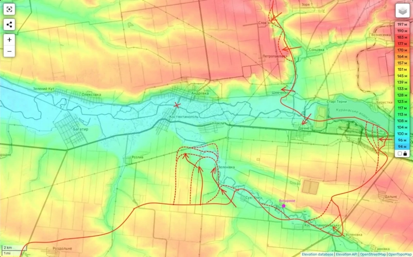 "Наши части южнее Купянска похоже пытаются создать еще один плацдарм. В районе населённого пункта Синьково. Если удастся, это будет здорово", - сообщил Подоляка.