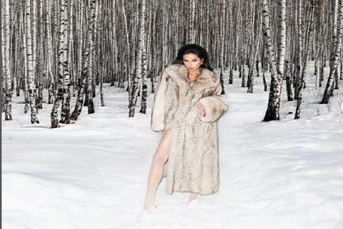 На плечи звезда набросила длинную шубу из натурального меха