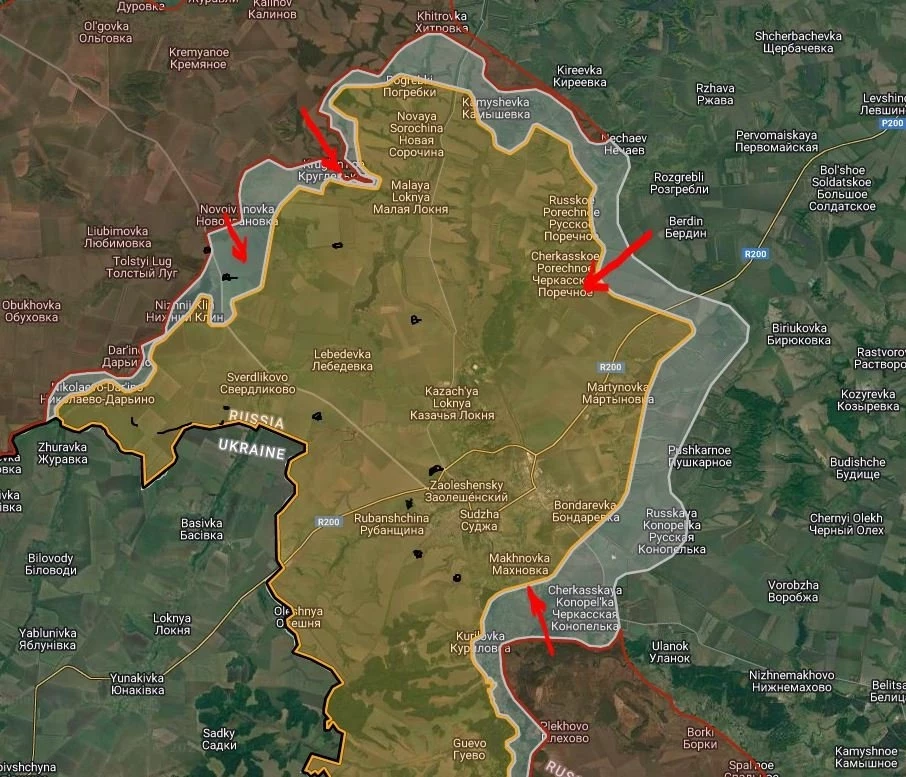 Продолжаются встречные бои в районе Кругленького, ВС РФ имеют тактические успехи, продвинулись в направлении Малой Локни на глубину до 800 м. и севернее в районе Русского Поречного.
