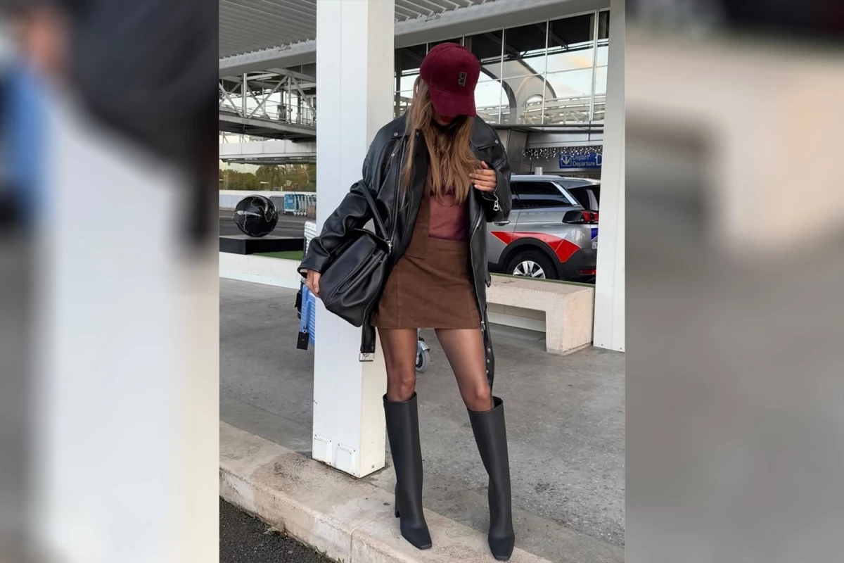 Судя по опубликованным Викторией Боней кадрам, в Америку она попыталась отправиться неузнанной. Звезда облачилась в коричневый костюм из мини-юбки и пиджака, кожаные сапожки на каблуках, а также чёрную куртку-косуху.