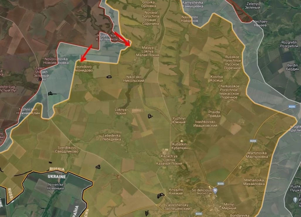 Подразделения Армии России расширили зону контроля в северу, югу и востоку от Кругленького. Сам небольшой населённый пункт сейчас под контролем ВС РФ. До административных границ Малой Локни остаются около полутора километров. Правда, на пути есть ещё один населённый пункт - Николаевка. Враг оказывает ожесточённое сопротивление, пытаясь на дать взять себя в окружения. Наши бойцы продвигаются с запада и с востока.
