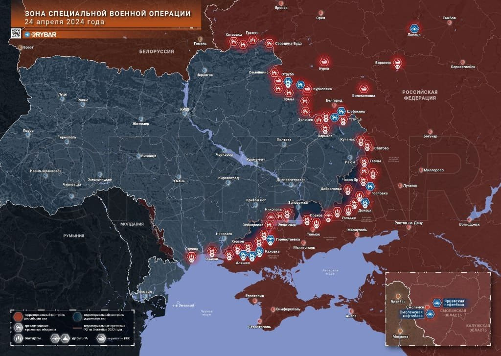 Последние новости СВО на 25 апреля 2024. Карта боевых действий на Украине на сегодня, военная сводка