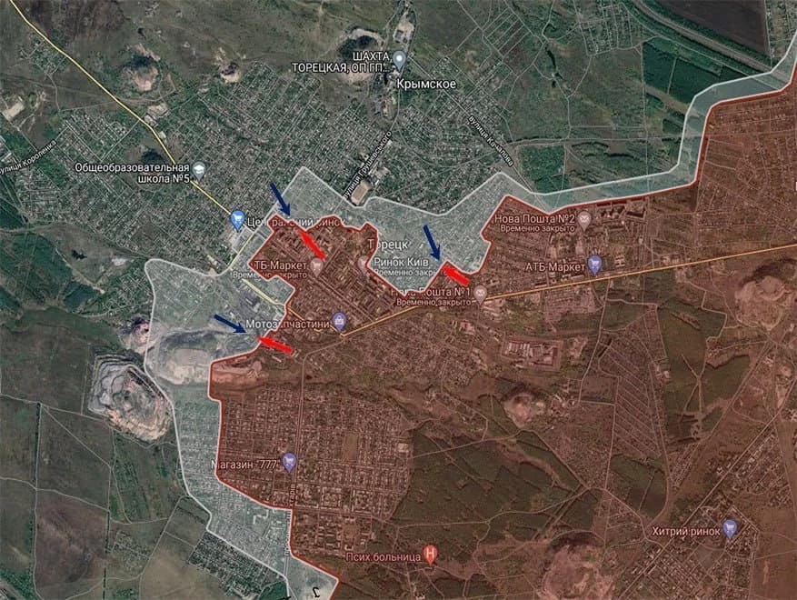 На Торецком направлении продолжаются встречные бои в районе Центрального рынка, российские войска давят в район Забалка и в направлении шахты «Торецкая».