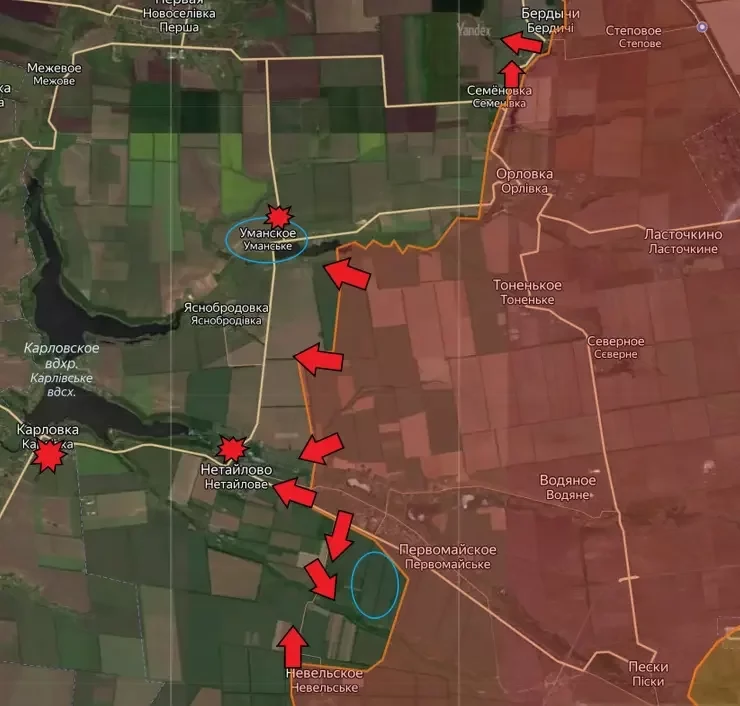 Вхождение в Соловьёво в итоге может позволить ВС РФ развивать успех в западном направлении, в первую очередь – в сторону соседнего Новопокровского, расположенного в низменности. Новопокровское входит уже в 3-ю линию обороны ВСУ к западу от Авдеевки. На этой же линии расположено Уманское, к окраинам которого тоже подошли наши войска.