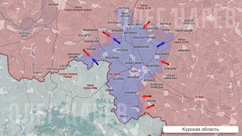 Активные бои идут сейчас и ближе к Судже, в Махновке. По последним данным, полного контроля над селом нет ни у одной из сторон. Сообщают, что российские штурмовые группы вплотную подошли к Бондаревке, там также идут интенсивные бои.