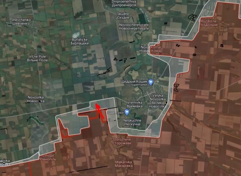 Великоновосёлковское направление. Продолжаются встречные бои западнее Времьевки в районе автодороги Гуляйполе-Великая Новосёлка.
