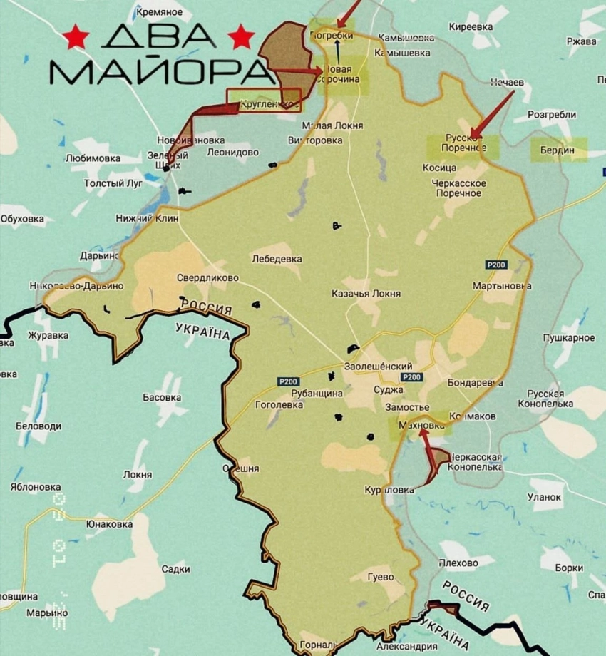 Также штурмовые отряды Северян с упорными боями продвигаются в лесополосах Суджанского приграничья, в окрестностях населенных пунктов Дарьино, Свердликово, Орловка, Николаевка, Махновка и Черкасское Поречное.