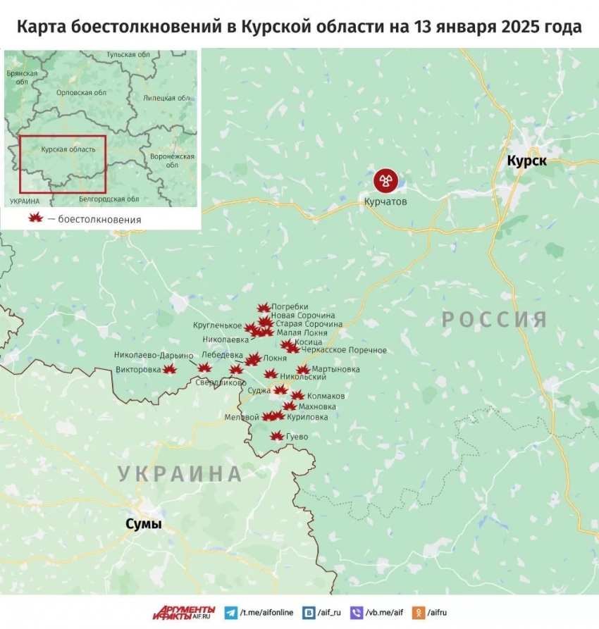 Новая карта боевых действий в Курской области: информация на 13.01.2025