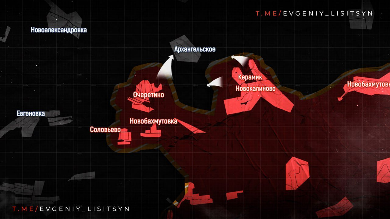 Такой подход позволил не только быстрее подобраться к Новоалександровке, но и помог фактически взять в клещи Архангельское на правом фланге, куда после потери Очеретина откатилась крупная группировка украинской армии.