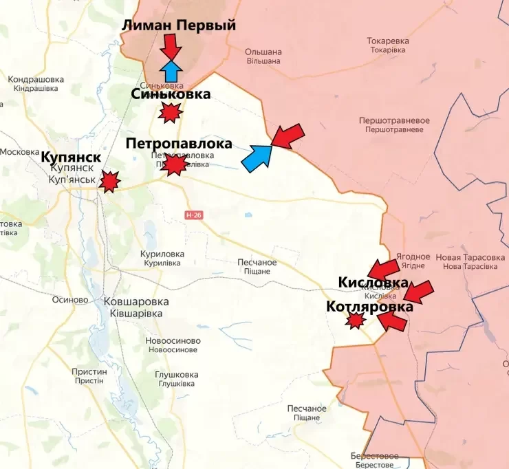 На Купянском направлении ВС РФ усложняют задачи для ВСУ. Непредсказуемость дальнейших действий наших парней на этом направлении сбивает с толку противника, который надеялся на попытку сдерживание только на Авдеевском участке фронта. В настоящее время наши войска, наступающие на Синьковку, соединились с подразделениями, штурмующими позиции украинских вооружённых сил в Кисловке.