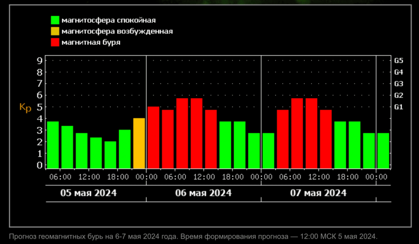 Магнитная буря 6 мая 2024: стали известны детали о геомагнитном фоне в понедельник