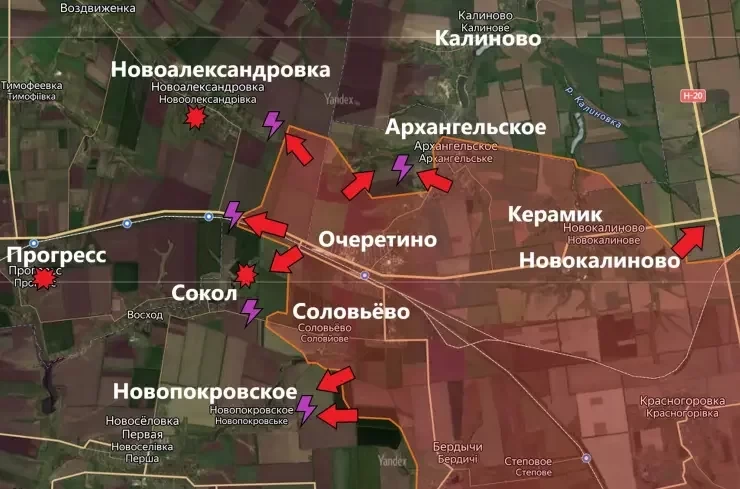 На Покровском направлении идёт зачистка территорий вокруг Архангельского. Идут бои восточнее Новоалександровки, восточнее Новопокровского, севернее Нетайлово (российские войска заняли участок шириной до 3,2 км на глубину до 1,3 км) и южнее Первомайского.