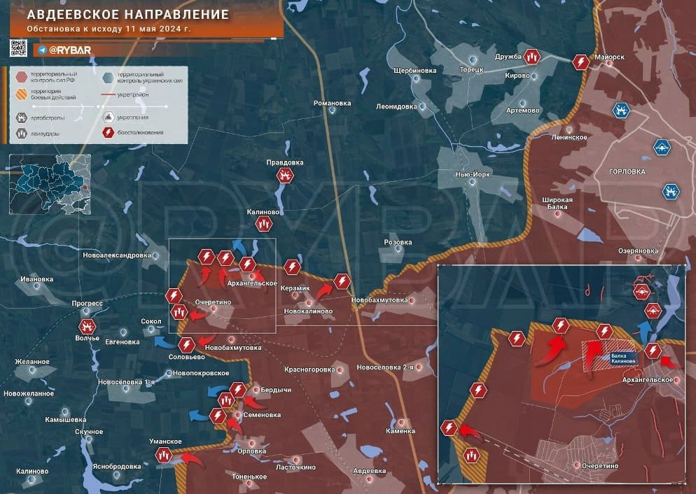 Новая карта боевых действий под Авдеевкой на сегодня, 12.05.2024