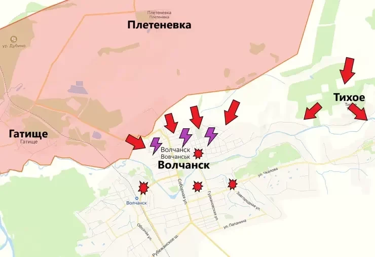 На Слобожанском направлении российские войска продолжают наступление и ведут бои в промзоне и многоэтажной застройке Волчанска, а также на подступах к Липцам. Тяжелые бои в районе Глубокого.