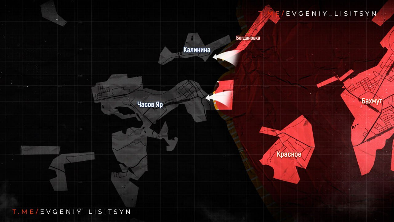 Армия России наступает на Часов Яр, используя тактику тройного удара, развивая наступление от Богдановки и Ивановского (Красного). Штурмовые подразделения ВДВ вгрызаются в оборону противника на восточных окраинах города, выбивая его из опорных пунктов. Авиация поддерживает огнем с кабрирования подразделения десантников штурмующих Часов Яр.