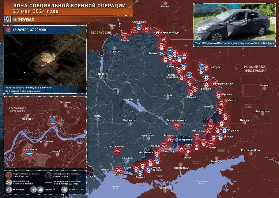 Последние новости СВО на 24 мая 2024. Карта боевых действий на Украине на сегодня, военная сводка
